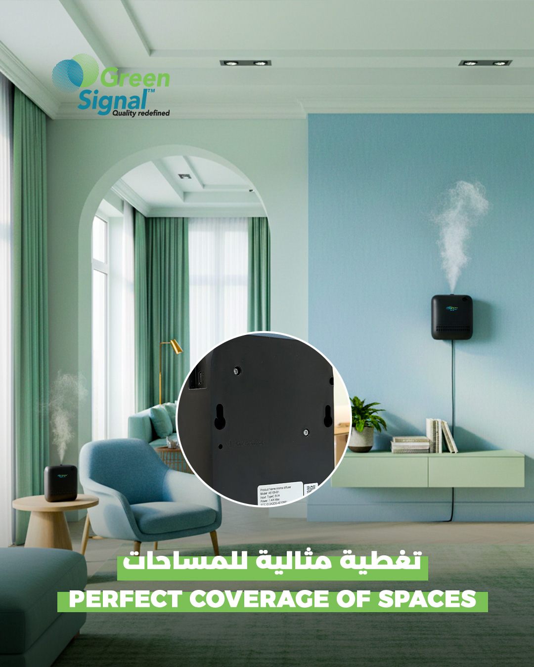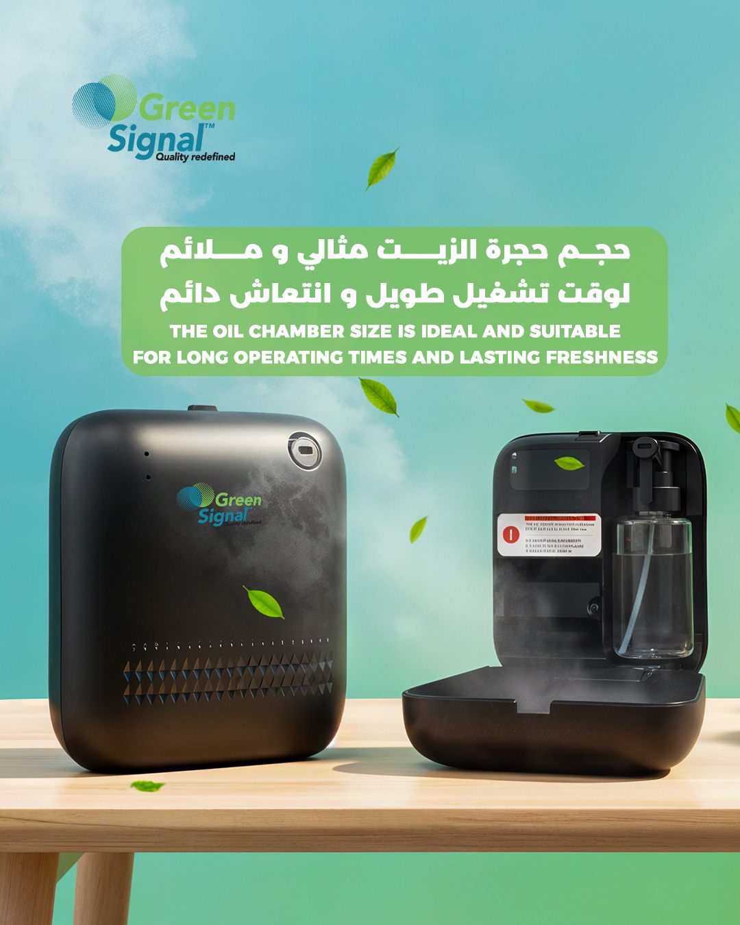 With its compact plastic design, quiet operation, and versatile placement options, the Green Signal Mini Diffuser is perfect for homes, offices, bedrooms, shops, and small commercial spaces, delivering a consistent and elegant scent experience.
